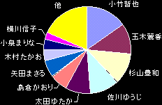 先々代女王の旦那さんの名前は「ジョルジュ」ですか.はて,この名前,どこかで聞いたような….あ,幽遊白書のコエンマの秘書青鬼・ジョルジュ早乙女か.…って最終回の感想がこれかい.表. EDの「声の出演」頻出ランキング
