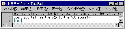 ところで,この図の状態でDelキーを押下すると,どちらの場合でも「a」が削除されますよね.しかし,母は「Delキーを押下するとカーソルの右の文字が削除される」と覚えていたようです.つまり,挿入モードでは「a」が削除されるけど,上書モードでは「y」が削除されると.なるほど,いつも何気なく扱っている私としては新鮮な感じがしました.