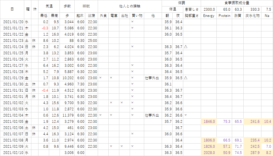 そんな状態ですが,社外作業のため,9時半頃出発しました.途中で早めの昼食を取って,12時着.来る必要あったのか? いや,来ることに意味があったのか?という感じで待機・立ち会いをしつつ,内職したりしました.思っていたより早く,夕方には解散.そして定時過ぎに帰宅.そんな日中の体調はわりと普通でした.